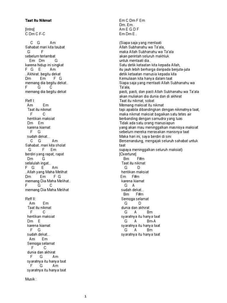 Dunia Sementara Akhirat Selamanya Chord / C dm (dunia sementara) f (akhirat selamanya).