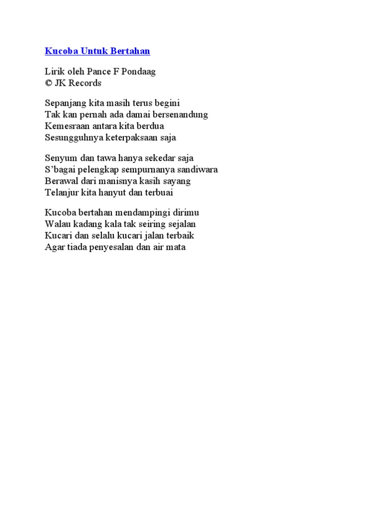Kucari Jalan Terbaik Lyrics By Pance Pondaag Sepanjang Kita Masih Terus Karaoke kucari jalan terbaik by pance pondaag.