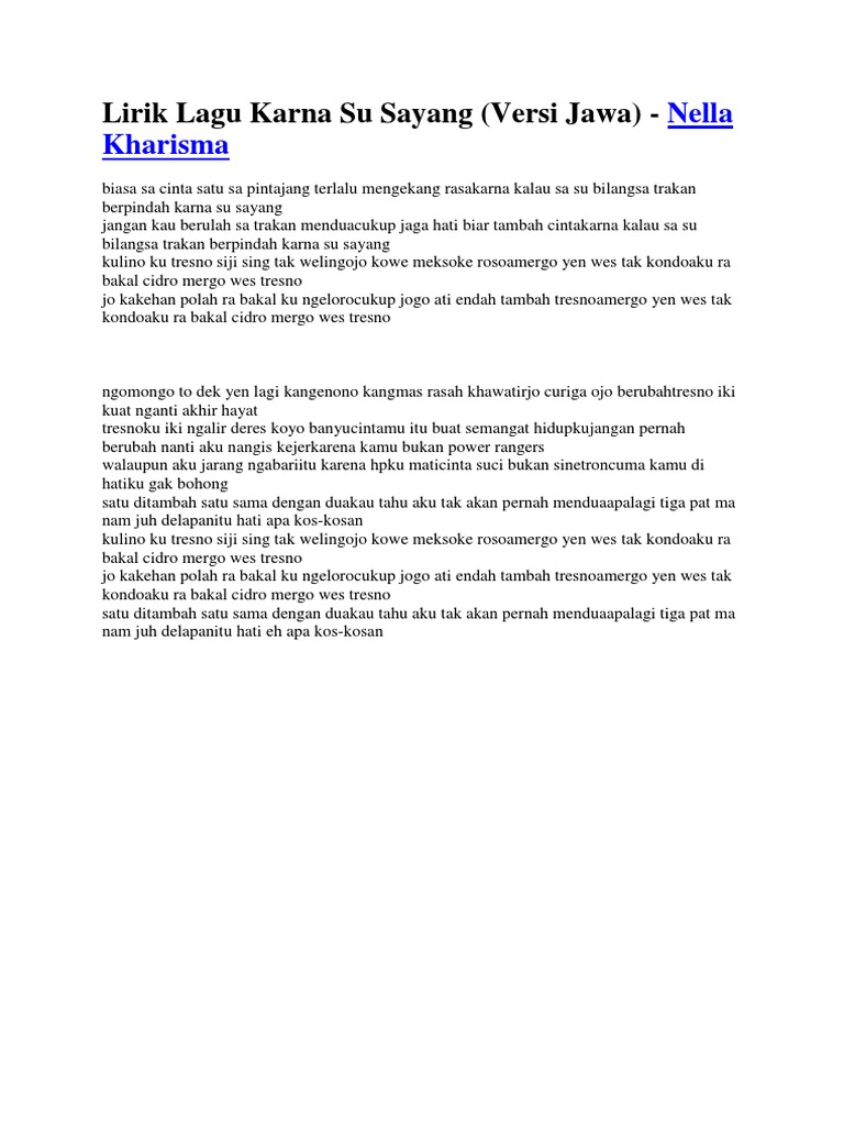 Lirik Lagu Karna Su Sayang - Dapatkan lirik lagu lain oleh near di kapanlagi.com.