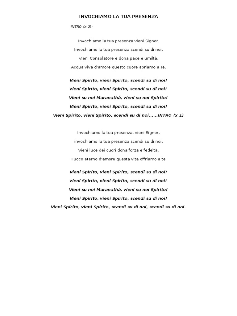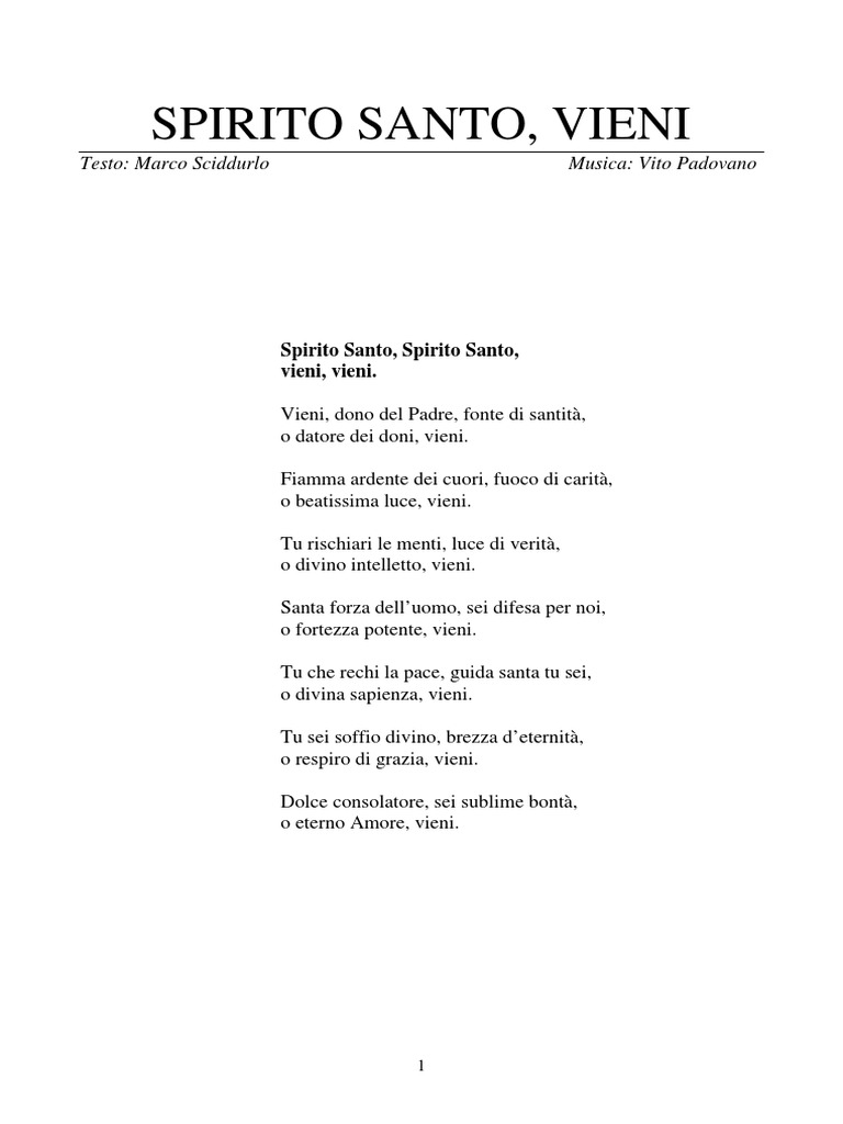 Vieni Spirito Testo - Tracking list e i testi dell'album: