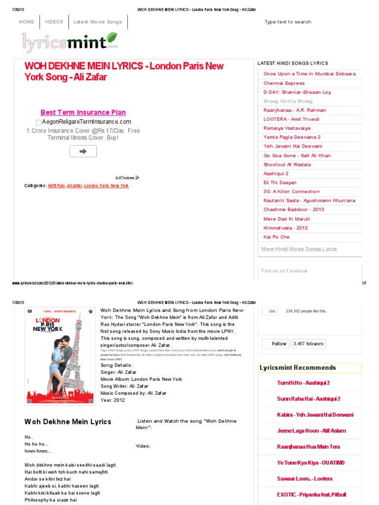 Voh Dekhnay Mein Female Acoustic Version Best Lyric Lpny Ali Zafar Aditi Rao Hydari Youtube O lale di jan gule guljar ruk ja o hare duppatte wali sidhi sadhi bholi bhali janam ruk jana o hare duppatte wali sidhi sadhi bholi bhali janam ruk jana tu salma hai ya sultana tu the details of o hare dupatte wali seedhi saadhi song lyrics are given below: